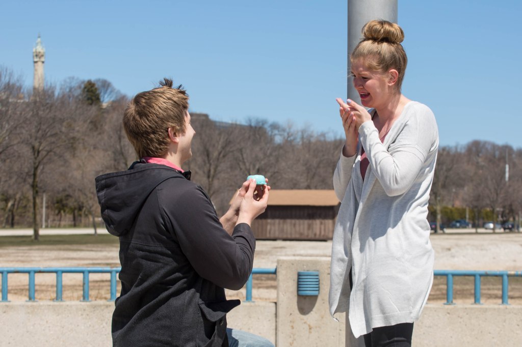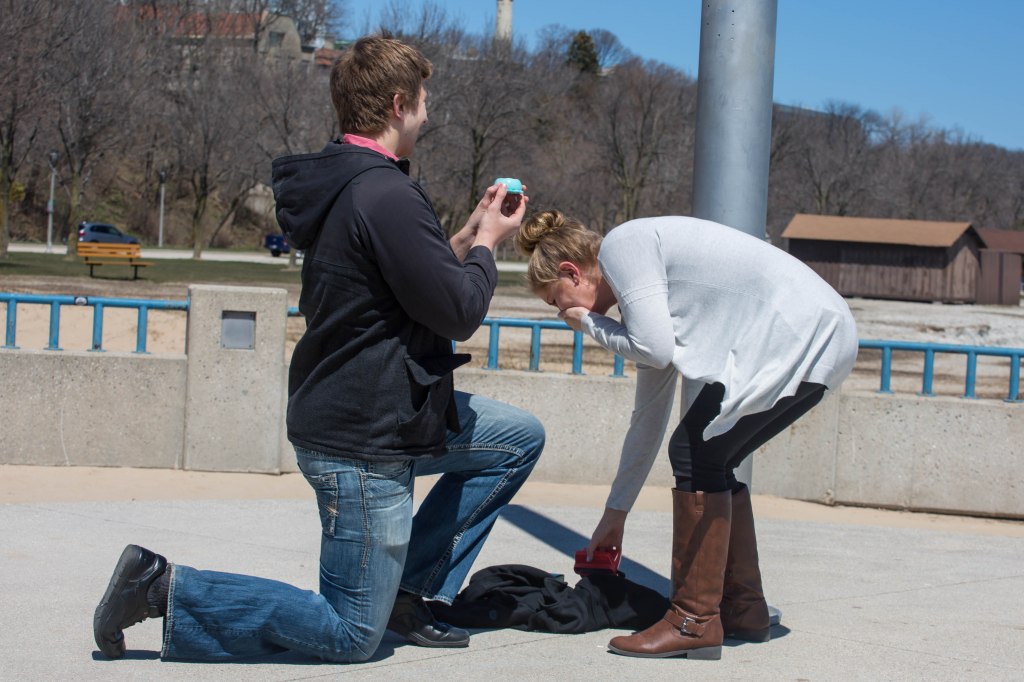 Our first stop was to our pier at McKinley Beach. I cleverly distracted Lori with an anniversary gift, only to get down on one knee and ask her to marry me, this time with a diamond ring. I presented the ring in a 3D-printed iris ring box. I used a DIY vapor chamber to smooth the surface and painted her favorite color, mint green.