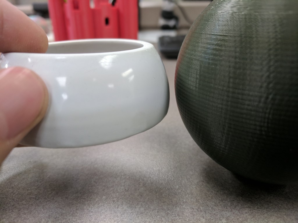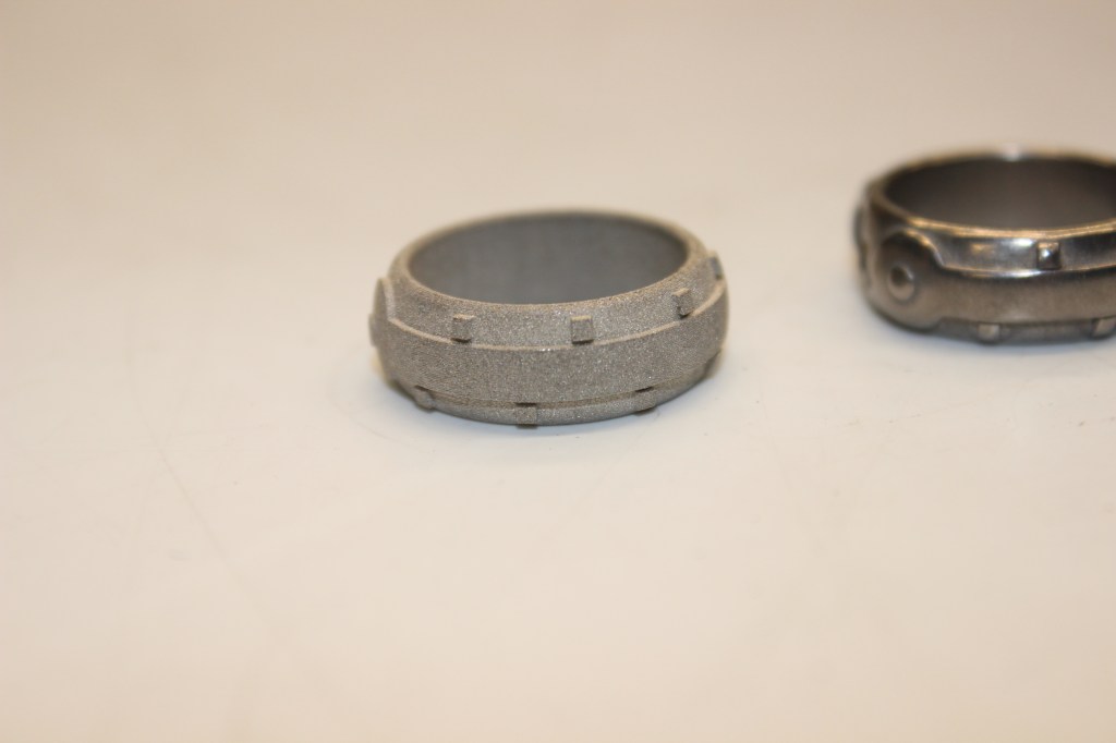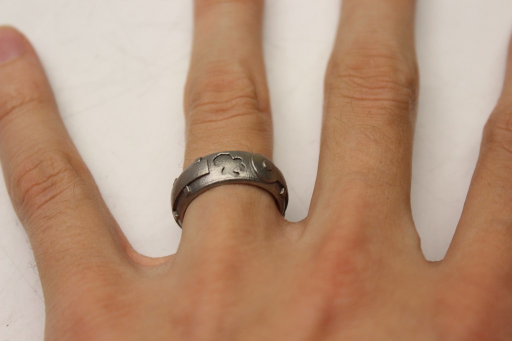 Once the design was complete, I printed a sample on an Ultimaker to get an idea of the details and fit on my finger. Many of the details were too small, so I adjusted them accordingly. My next revision, I printed on CBAM because, I could. I wore this version for a week and was comfortable with the fit and look.